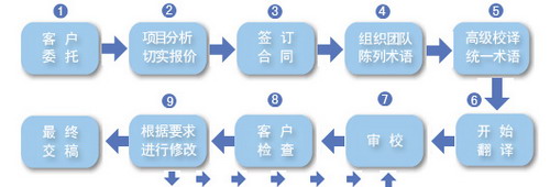 9.根据要求进行修改:客户如对所译资料有任何不满意的之处,我们都将根据要求进行修改润色,然后针对修改部分再次进行审校和客户检查,如不满意,将再次修改,直到客户满意为止。